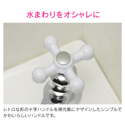 ◆樹脂製の丸みを帯びた白いハンドルがかわいい蛇口です。