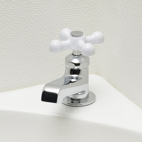 ◆ホワイトクロスハンドルがオシャレな呼13の立水栓(単水栓)です。