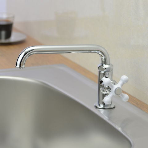 ◆ホワイトクロスハンドルがオシャレな呼13の立形自在水栓です。