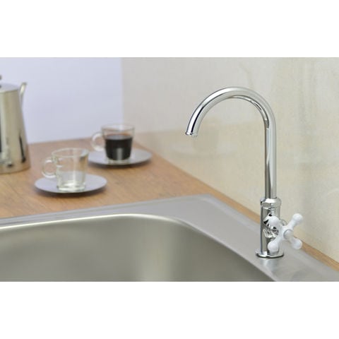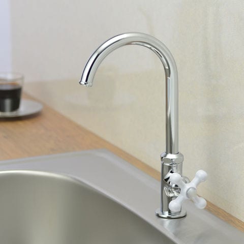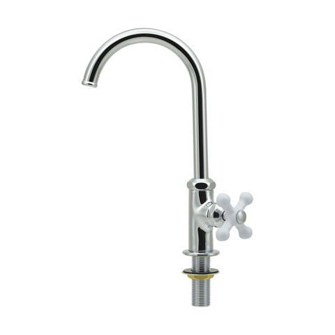 ◆ホワイトクロスハンドルがオシャレな呼13の立形スワン水栓です。