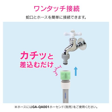 ◆ホーセンド付きのホースとワンタッチで接続できるネジ口金付き。取外すとG1/2ネジになります。