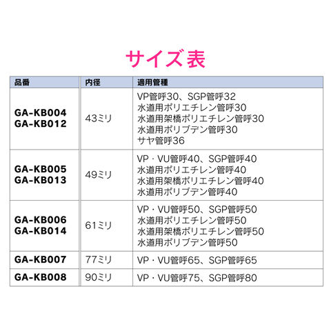 ◆呼40のVP・VU管、水道用ポリエチレン管などに対応しています。
