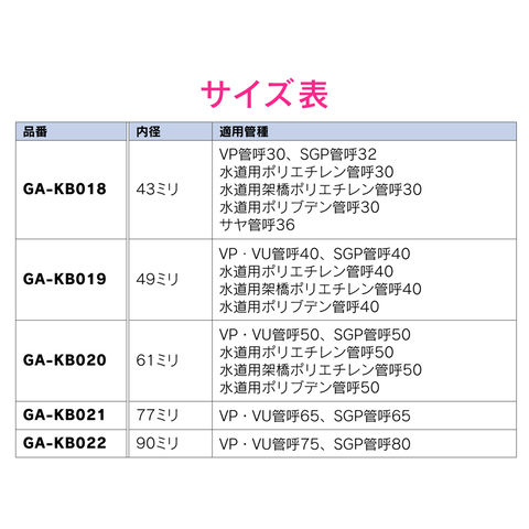 ◆呼30のVP管、水道用ポリエチレン管などに対応しています。