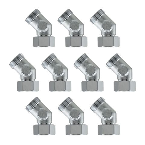 ◆止水栓回りの配管の角度調整に便利な、片方がナット付きの45°エルボの10個入りです。