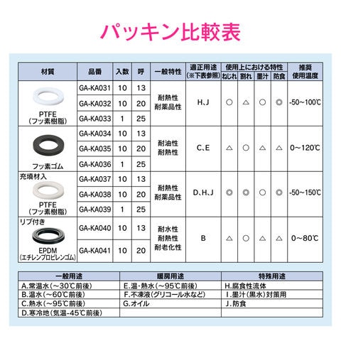◆フレキパイプ、ニップル、ユニオンなどのフクロナット用パッキンとして幅広く使用できます。