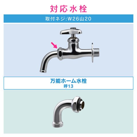 ◆呼13の万能ホーム水栓などに取付けできます。(取付対応ネジ:W26山20)