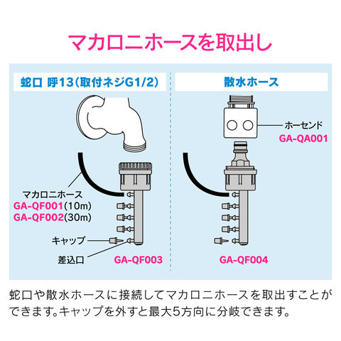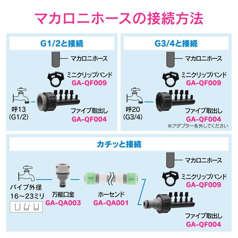 ◆マカロニホースは別途GA-QF001(10m)、GA-QF002(30m)をお求めください。