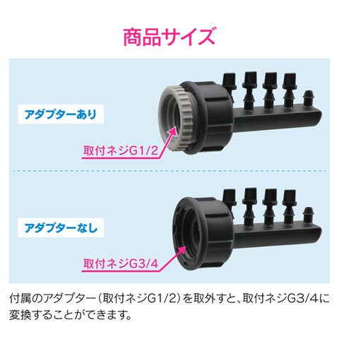 ◆取付ネジサイズ:G1/2、アダプターを外すとG3/4