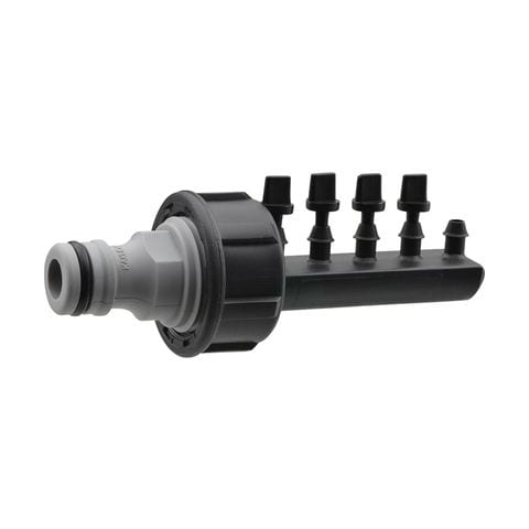 ◆ホーセンドのついたホースとマカロニホースを接続することで5方向へ分水できます。