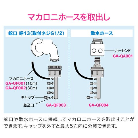 ◆マカロニホースは別途GA-QF001(10m)、GA-QF002(30m)をお求めください。