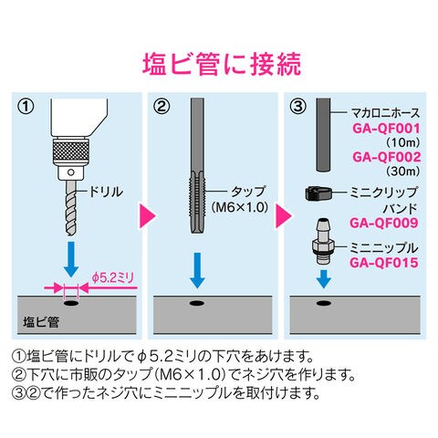 ◆マカロニホースは別途GA-QF001(10m)、GA-QF002(30m)をお求めください。