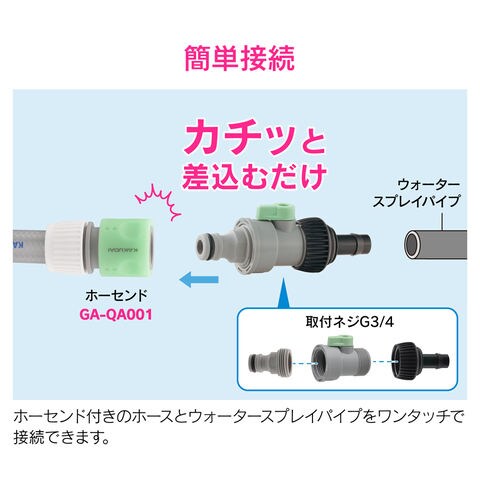 GAONA 止水コックつきアダプター ウォータースプレイパイプ用 ワンタッチ接続 ガオナ GA-QF033 【返品種別B】