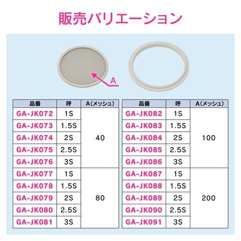 ◆ヘルール継手の間に取り付け、ゴミを除去し異物混入を防ぎます。