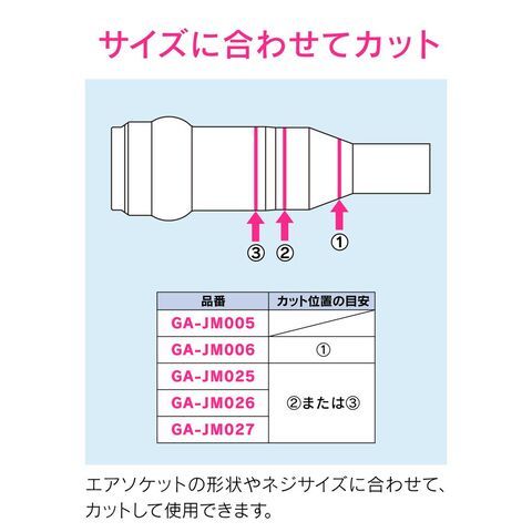 ◆エアソケットの形状やネジサイズに合わせて、カットして使用できます。