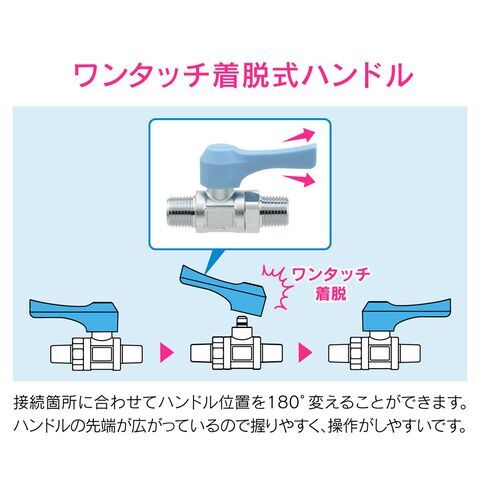 ◆ハンドルはワンタッチで着脱できるので、180°向きを変えることができます。