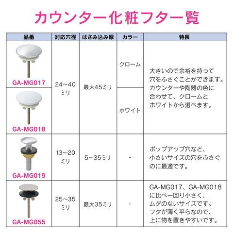 ◆水まわりの不要な陶器穴やカウンター穴などをふさぐフタです。