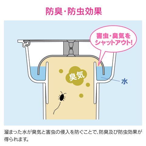 ◆排水口からの臭いや虫の侵入を防ぎます。