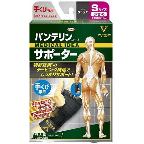 興和 バンテリンコーワ サポーター 手くび専用 ブラック 小さめ Sサイズ(左右共通・1枚入り) バンテリンサポ-タ-テクビBKチイ 【返品種別A】