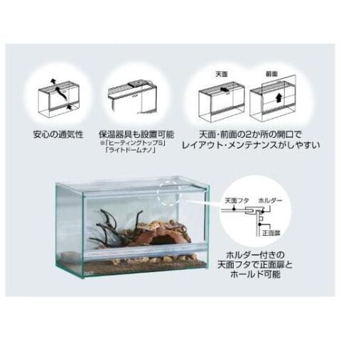 ※ケージを内側から破損し脱走する恐れがありますので、ヘビや中型~大型で力の強い生体には使用しないでください。
