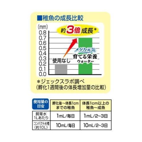 ◆本製品は、餌からは摂取しにくく、室内飼育や日照不足で十分な太陽光を浴びることのできないメダカに不足しがちなビタミンB3・B6・パントテン酸と各種ミネラル類を配合した、成長用栄養ウォーターです。