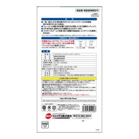 ■適合水槽:水槽幅40cm以下のフレームレス水槽(ガラス厚2~8mm以下)、枠付水槽(枠幅17mm以下)