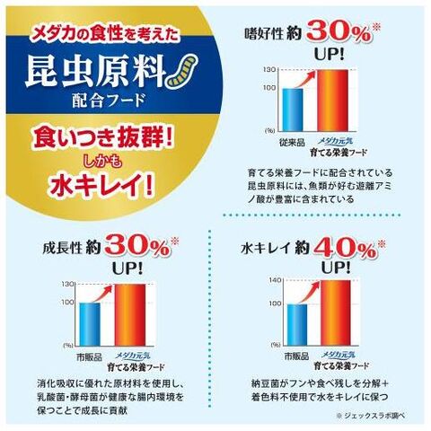 ◆嗜好性が高く、良質なアミノ酸をバランスよく含む昆虫原料を配合したメダカ用フレークフードです。