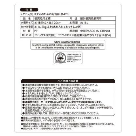 ◆鳥獣被害の恐れがある場合は、別売の「メダカ元気 メダカのための飼育鉢用フタ大 半円」をご使用ください。