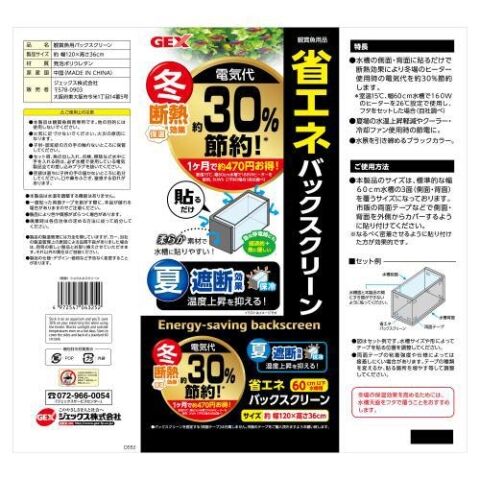 ◆水槽の側面・背面に貼るだけで断熱効果により冬場のヒーター使用時の電気代を約30%節約します。