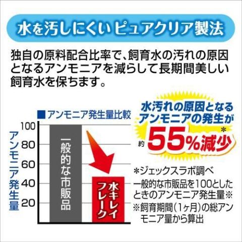 ◆独自の原料配合比率で、飼育水の汚れの原因となるアンモニアを減らして長期間美しい飼育水を保ちます。