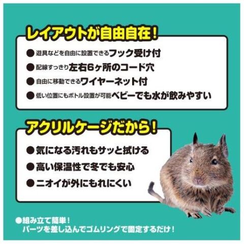 ◆クリアでかわいい姿がよく見える! 上下運動が得意なフクロモモンガ&デグーにオススメのクリアケージ。