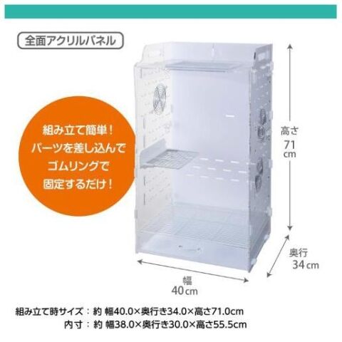 本体:アクリル・ステンレス、スノコ:鉄、トレイ:アクリル、スプリング:ステンレス、ゴムリング:シリコン、ネジ・ナット:PC、ワッシャー:PA、メッシュステージ:ABS・鉄、ホイールホルダー:ABS、ワイヤーネット:鉄、フック受け:亜鉛合金