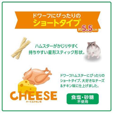 ◆ドワーフハムスターにぴったりのショートタイプ。大好きなチーズ&チキン味に仕上げました。