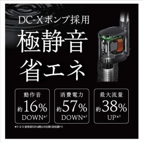 ◆新開発DC-Xポンプ採用。ろ過性能UP、極めて静音&省エネ化。