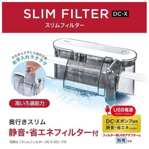 ◆新開発DC-Xポンプ採用、ろ過性能UP、極めて静音&省エネ化を実現した「スリムフィルター DC-X S2」をセット。