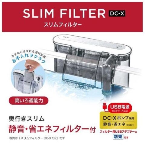 ◆新開発DC-Xポンプ採用、ろ過性能UP、極めて静音&省エネ化を実現した「スリムフィルター DC-X S2」をセット。