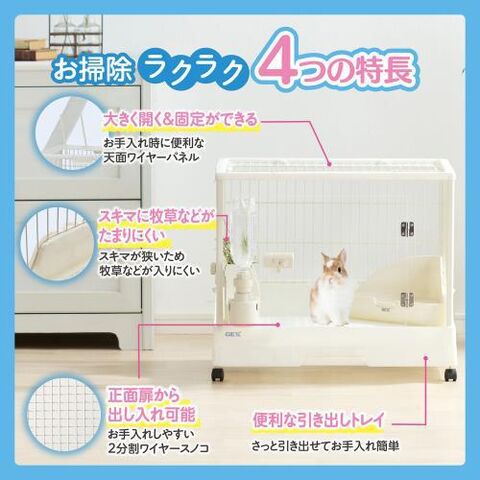 大きく開いてお世話が簡単な着脱可能なクリア扉。取り外せるので部屋んぽにも便利です。