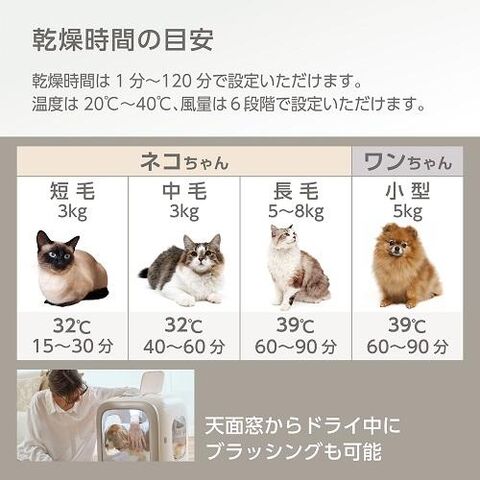 ◆ドライヤーが苦手な子に下からやさしく風を送り込み乾かします。