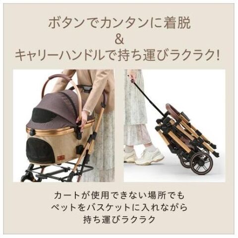 ◆ペットとの距離が近くて安心:バスケットとの距離が近いフレーム設計で、ペットの様子がよく見え、触れ合えます。