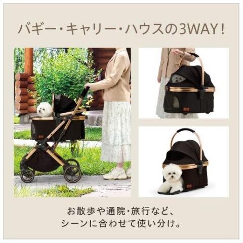◆バギー・キャリー・ハウスの3WAY:便利な3パターンの使い方ができるので、お散歩や通院・旅行など、シーンに合わせて使い分け。