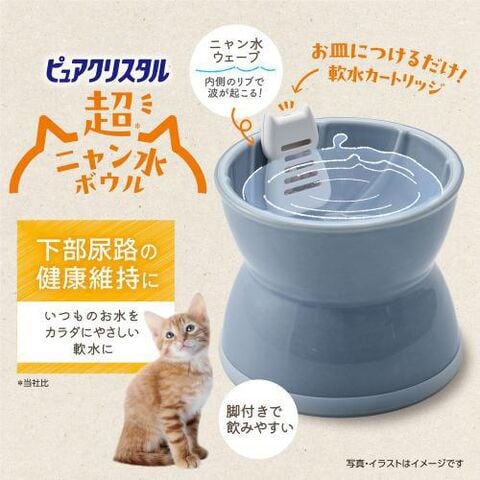 ネコちゃん型のカートリッジをボウルにつけるだけで、水道水のマグネシウム・カルシウムを減少させ、やさしい軟水に!