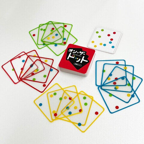 4枚の透明カードを重ねて一番最初にお題のカードと同じ模様にできたプレイヤーの勝利