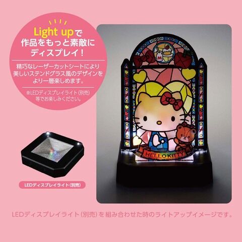ハローキティをモチーフに、キャラクターが飛び出して見える不思議なステンドグラスの空間を表現。色鮮やかで飾り映えのある商品です。
