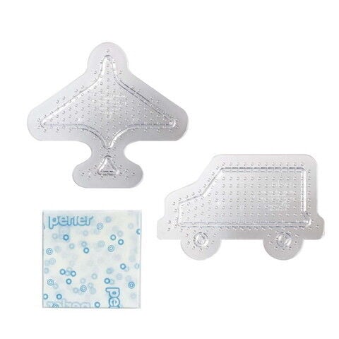 カワダ かたちプレートセット 飛行機と車(透明)【80-30033】 パーラービーズ 80-30033プレートセット ヒコウキ 【返品種別B】