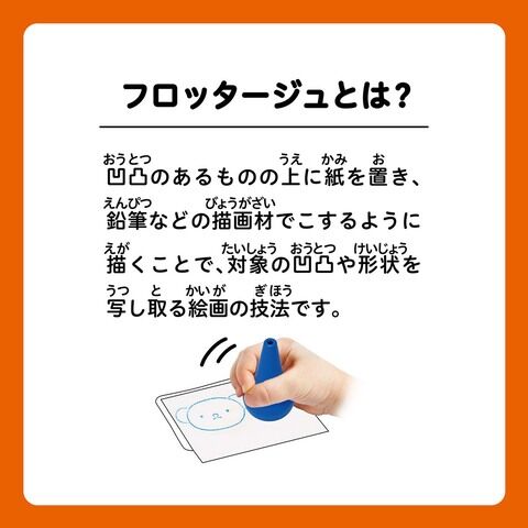 ■フロッタージュカードを使ってお絵描き! カードの上に紙を置いてこするだけ。小さなお子様でも、ミッフィーやなかまたちのイラストを簡単に描けます。