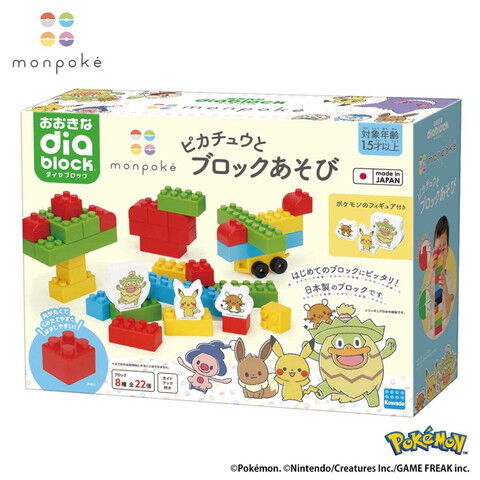 組み立てやすく外しやすい、1才半から遊べる『おおきなダイヤブロック』からモンポケが登場!