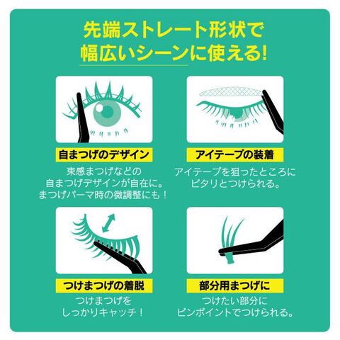 先端ストレート形状でまつげやアイテープが掴みやすいアイメイク用ツィザーズ。