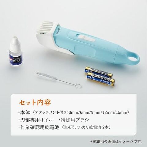 ◆刃部専用オイル、掃除用ブラシ、作動確認用電池2本付。