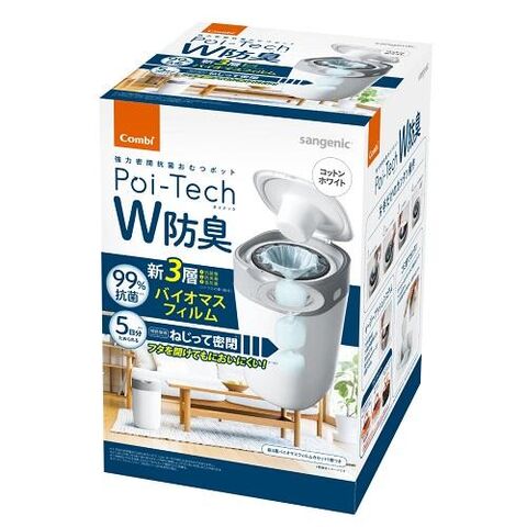 コンビ 強力密閉抗菌 おむつポット ポイテック W防臭 コットンホワイト(WH) ポイテツクWシヨウシユウ 【返品種別A】