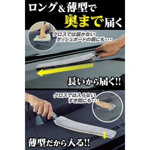 クロスでは届かないダッシュボードの奥にも、長いから届く!