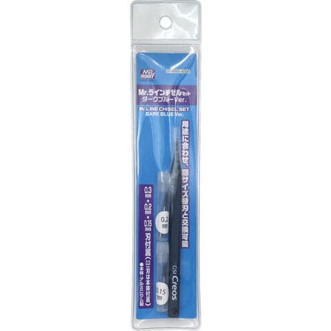GSIクレオス Mr.ラインチゼルセット ダークブルーVer. (0.3mm/0.2mm/0.15mm刃付属) です。